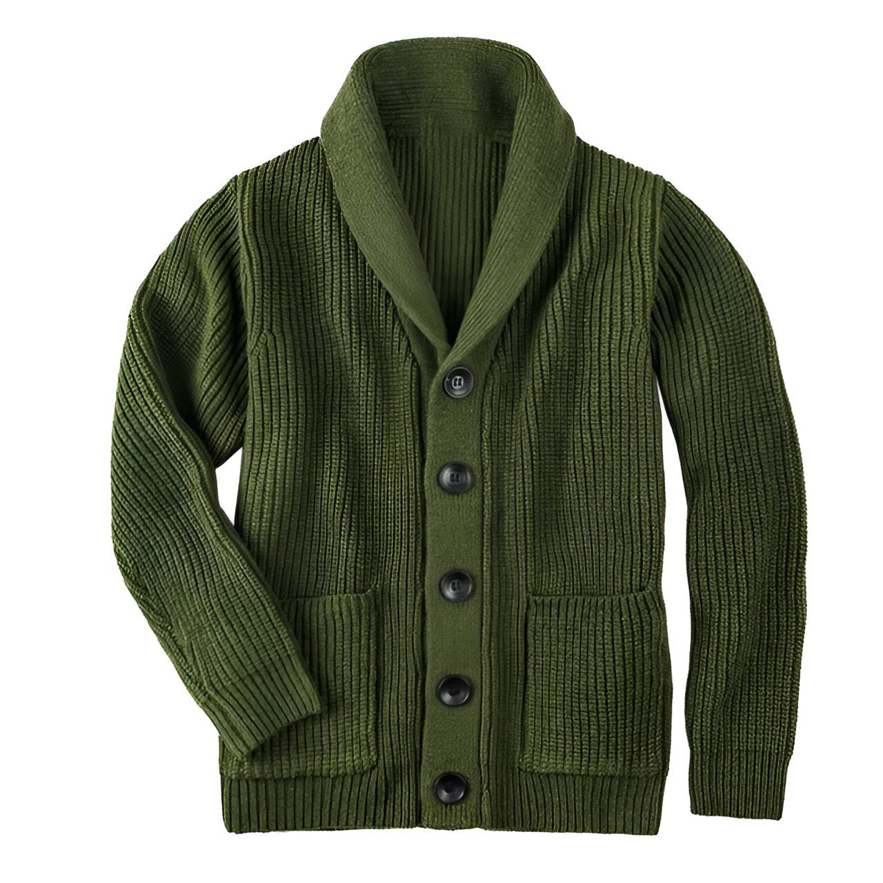 Gebreide Knop Omlaag Cardigan met Zakken voor Heren – Legergroen